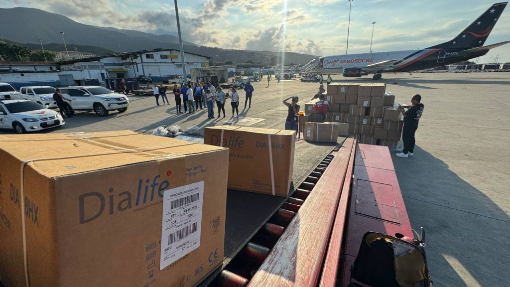 (Caracas, 06 de enero de 2025).- Este martes, arribó al país un cargamento con insumos para tratar a los pacientes que sufren de enfermedades renales y así fortalecer el Sistema Público Nacional de Salud, después del bombardeo perpetrado por el gobierno de Estados Unidos el pasado 3 de enero.